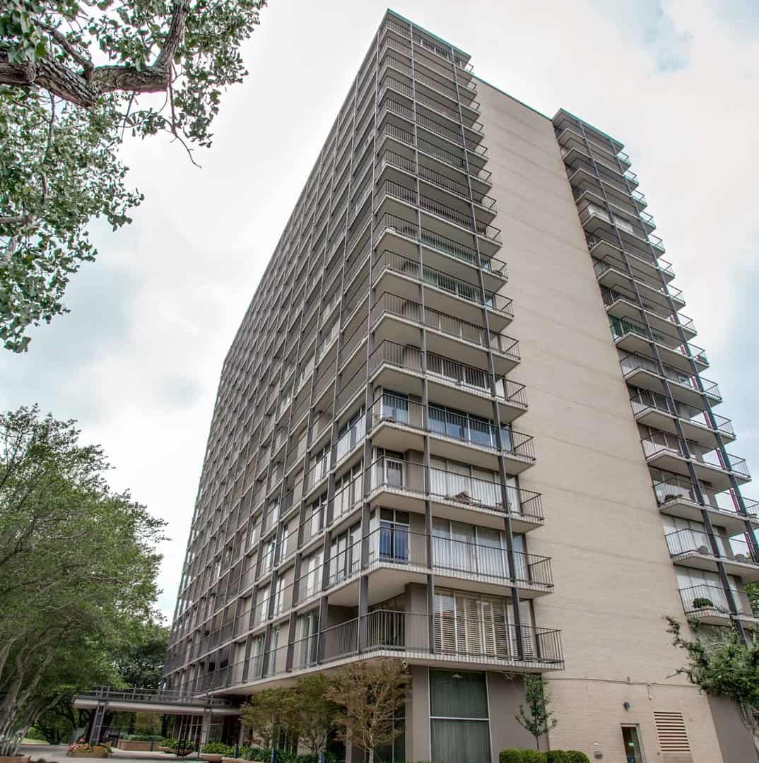 Few buildings can compare to the convenience of Park Towers. In an idyllic wooded setting at the juncture of Turtle Creek, Oak Lawn and Uptown, this elegant Midcentury Modern tower affords its residents the best of all the communities. Known for its large balconies and leafy views out of floor-to-ceiling windows, the building offers a lushly landscaped pool terrace, guest suites, party rooms, a catering kitchen, an exercise room and a staff to welcome you home, every day.