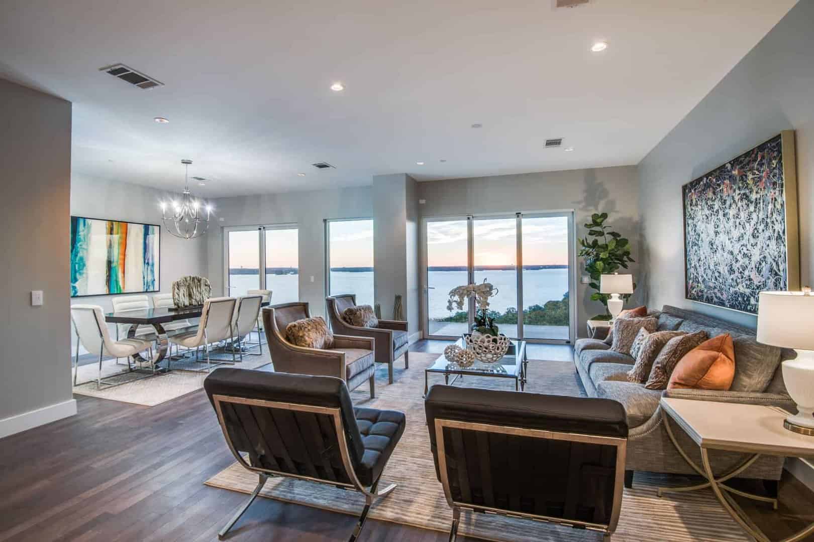 If you dream of living in a luxurious home with breathtaking views across water, it can be realized at The Lakeside Tower. With only 48 residences, this Mediterranean‐styled tower overlooking Lake Grapevine offers first‐class amenities in a resort‐style setting, including direct elevator access, 10-foot ceilings, gourmet kitchens and nesting glass doors that open to expansive balconies. The property’s many perks include a yoga and Pilates studio, a coffee bar and lounge, a theater, a wine room, guest suites, dry-cleaning services and an on-site spa.